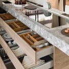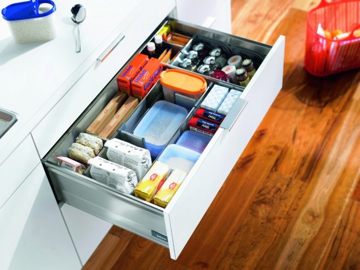 Има няколко основни типа издърпващи се системи, които днес най-често се използват в интериора. Първият и най -популярен са чекмеджетата. По принцип те се намират под плота. Често горните и долните редове са представени под формата на такива издърпващи се системи, което е доста удобно за използване. Всички необходими предмети са наблизо, няма нужда постоянно да търсите кухненски прибори или съдове.