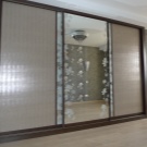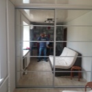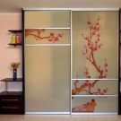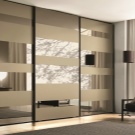 Фасадната декорация най -често се извършва с огледало. Това е най -практичният вариант за мебели, който служи като гардероб. Тъй като големите огледала в цял ръст са тежки, дизайнът на плъзгащите се врати трябва да бъде възможно най-здрав. Струва си да изберете MDF и ПДЧ с висока плътност или плътни видове дърво като материали, подплатата няма да работи. Предната част на плъзгащите гардероби може да бъде изработена от различни декоративни материали: цветна пластмаса, прозрачен или полупрозрачен PVC, ламиниран шперплат или светло органично стъкло. Силата на фасадните материали не е важна, тъй като вътрешните усилватели поемат цялото натоварване върху себе си.