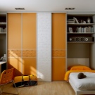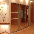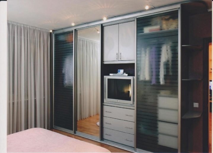 Струва си да се отбележи прост гардероб с три врати и външно осветление с прожектори. Такъв проект не заема много място и е лесен за инсталиране..