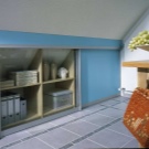 В селска къща е възможно да се оборудва гардероб на тавана, ако таванското помещение е изолирано, защитено от влага и има фино покритие. Има две възможности за местоположението на външната стена с плъзгащи се врати: по наклонени подове или през тях. Във всеки случай не можете да правите без нестандартни части със скосени ъгли. Това ще усложни монтажните работи, но ще ви позволи да създадете оригинален интериор и да дадете повече свободно пространство на 1 -ви етаж..