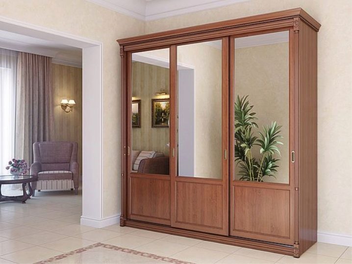 Шкаф плъзгащ се гардероб от естествено дърво. Въпреки високата цена, той изглежда невероятно престижен..