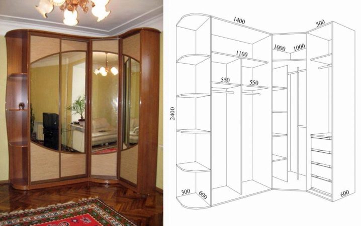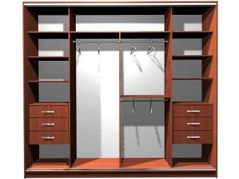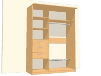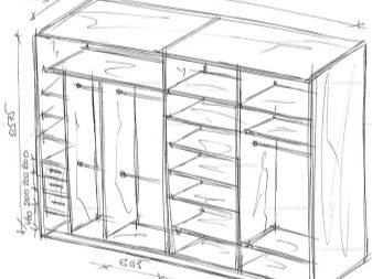 Вътрешно пълнене. В зависимост от това какво точно ще се намира в шкафа, се избира броят на рафтовете и отделенията. Има много готови чертежи и планове за гардероби: можете да изберете един от тях или да създадете свой собствен.