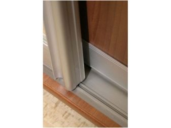 Долна релса – най -простият, най -удобният и надежден: вратите се плъзгат строго по водачите и не се сблъскват помежду си. Когато избирате този метод за монтиране на врати, трябва да обърнете внимание на колелата, тъй като цялата маса на крилото на вратата лежи върху тях..