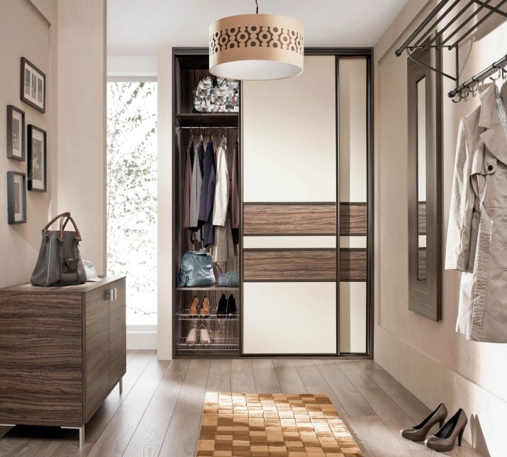 Стандартният шкаф с правилна правоъгълна форма може да бъде вграден или шкаф. За коридора най -добрият вариант би бил директен вграден гардероб – такива модели имат добра простор.