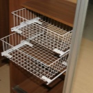 Най -простият, най -същественият и функционален компонент. Най -често се прави от ПДЧ. Размерът на рафтовете определя капацитета и ефективността на използване на вътрешното пространство, което трябва да се вземе предвид при избора на шкаф.