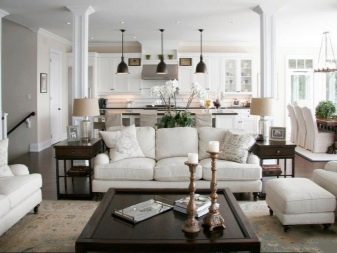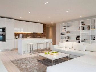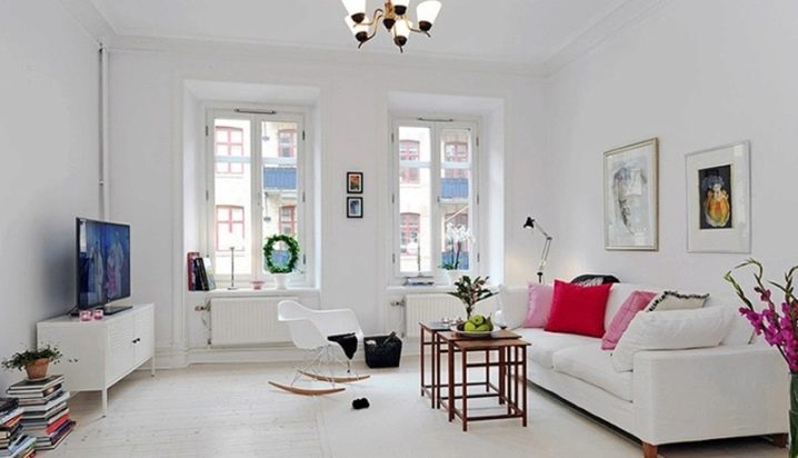 - Трябва да се намери баланс. Белият цвят работи чудесно в тандем с други нюанси, но сам по себе си в обстановката изглежда твърде безличен и скучен. Излишъкът му в интериора може да предизвика асоциации с оперативния стерилитет..