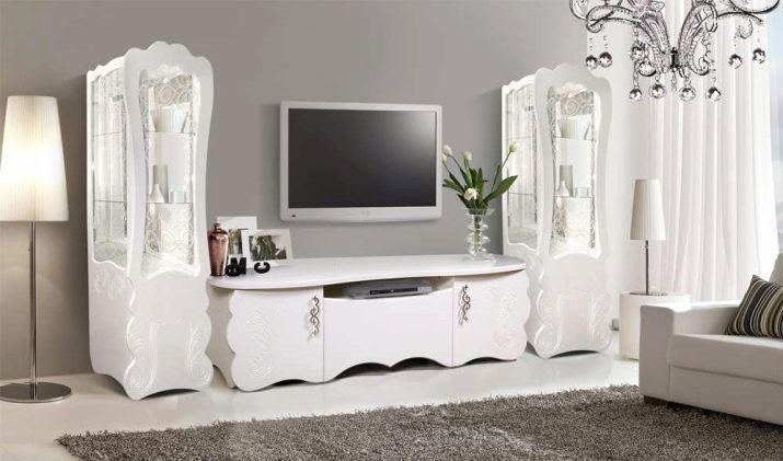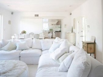 - Трудности при напускане. Всички несъвършенства са ясно видими на бялата повърхност. Пръстовите отпечатъци и ивиците са особено очевидни върху лъскавите части. Ето защо, когато купувате бели слушалки или диван, бъдете подготвени за редовна поддръжка. Ако в къщата има малки деца или домашни любимци, може би си струва да пропуснете покупката напълно..