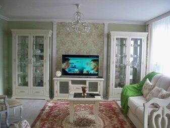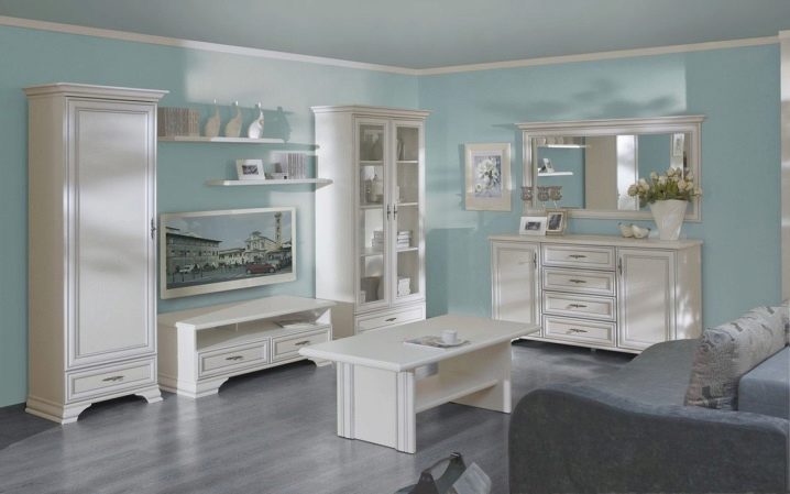 Белите мебели рядко се използват за обзавеждане на стая, декорирана в същите нюанси. Такъв интериор изглежда скучен и монотонен. Ето защо спомагателните цветове най -често се използват или в самите мебели, или в декорацията на стаята. Те се избират в зависимост от стила, в който холът ще бъде декориран..