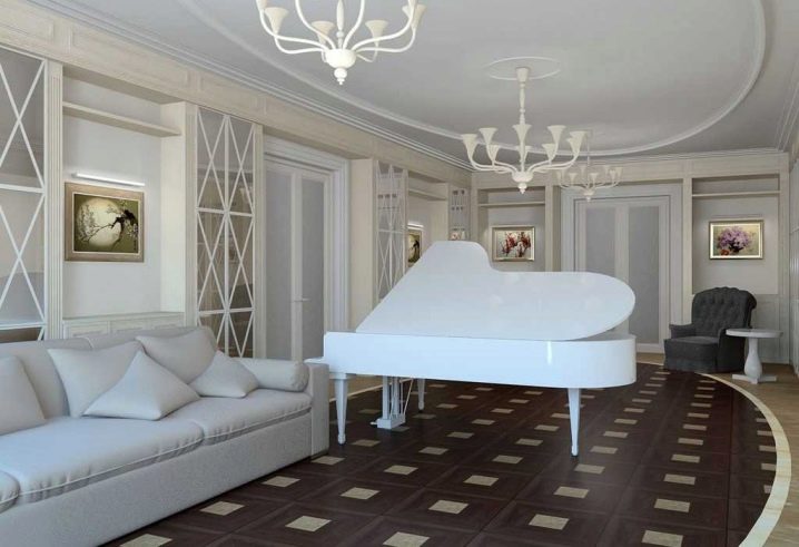 Този стил на декорация е характерен за елитни имения, изложбени салони, дворци на културата. Истински бял полиран роял, който може да украси не само концертна зала, но и хола на някоя звездна актриса или певица, може да се счита за особен шик..