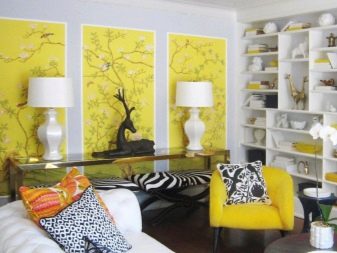 Дървени панели с декорации от плат, по -специално кадифе, ще изглеждат достойно. Но тези техники ще бъдат подходящи само в големи дневни.