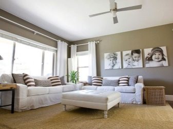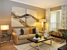 - Недопустимо е използването на големи картини или рамки за снимки в малка всекидневна. Те визуално ще направят стаята още по -малка. Ако сте собственик на просторна стая, можете спокойно да използвате всякакви техники и идеи. Основното правило е да не се нарушава хармонията..