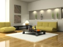 Особеност на минимализма е липсата на рисунки и декор върху мебели в пастелни цветове. Този стил отрича наличието на каквито и да било орнаменти. Разрешено е обаче да има една снимка на стената или свежи цветя (не трябва да има много саксии). От мебелите можете да добавите масичка за кафе в хармония с общия стил, както и няколко интересни пуфа.
