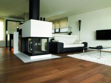 Можете да поставите линолеум на пода на хола. Той се вписва перфектно дори върху несъвършено равна повърхност, има добра топлоизолация и е лесен за почистване. За да създадете уютна атмосфера след полагане на линолеум, можете да поставите малък килим с дълга дрямка под масичката за кафе в центъра на стаята. Килимите с големи размери стаи станаха по-малко популярни напоследък и не са толкова практични, колкото чист, елегантен под от линолеум..