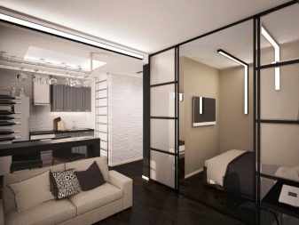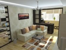 Мебелите трябва да бъдат избрани компактни, ако е възможно и трансформация. Тук става възможно безопасно да експериментирате с всякакви предмети: гардероби, рафтове, рафтове, ъглов диван, телевизор.