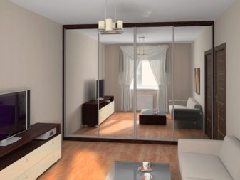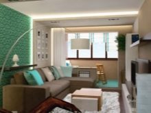 Мебелите трябва да бъдат избрани компактни, ако е възможно и трансформация. Тук става възможно безопасно да експериментирате с всякакви предмети: гардероби, рафтове, рафтове, ъглов диван, телевизор.