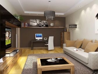 - Често ъглите остават свободни, въпреки че можете да се възползвате максимално от тях. Ето защо се създават ъглови дивани и гардероби. Можете да отделите свободния ъгъл с малка стена от гипсокартон или рафт, където ще бъде разположена работна зона с бюро и компютър.