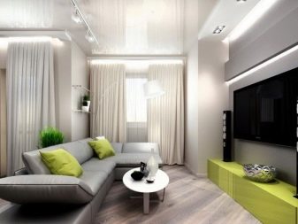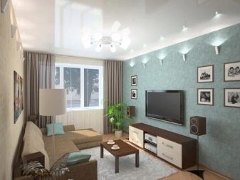 Стаята може да бъде квадратна, правоъгълна, дълга, тясна. Допълнителни трудности се добавят от различни ниши и первази, ъгли. За да увеличите площта, можете да комбинирате хола с лоджия или балкон.