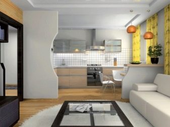 Това са всякакви прегради от гипсокартон с декоративен дизайн, плъзгащи се и сгъваеми паравани от безтегловна пластмаса и стъкло с витражи и орнаменти. Дори тъканите могат да се използват умело за огради. В обичайния случай има концепция за зониране за различни ъгли. Може да се прилага с помощта на осветителни тела, цветове и декоративни елементи. Огледалата, поставени по стените, тавана или вратите на шкафа, визуално ще увеличат пространството.