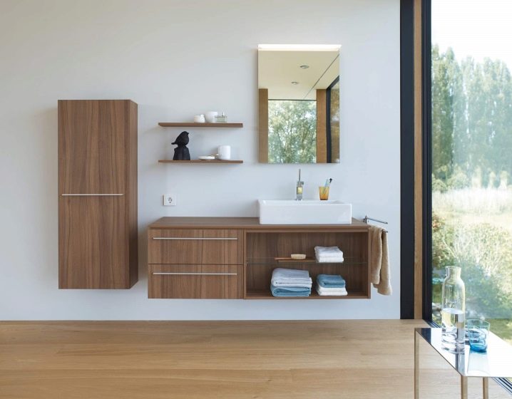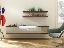 - Висящият шкаф създава пространство в стаята и я прави лека. Такъв модел трябва да бъде стабилен, лесен за използване, просторен, функционален..