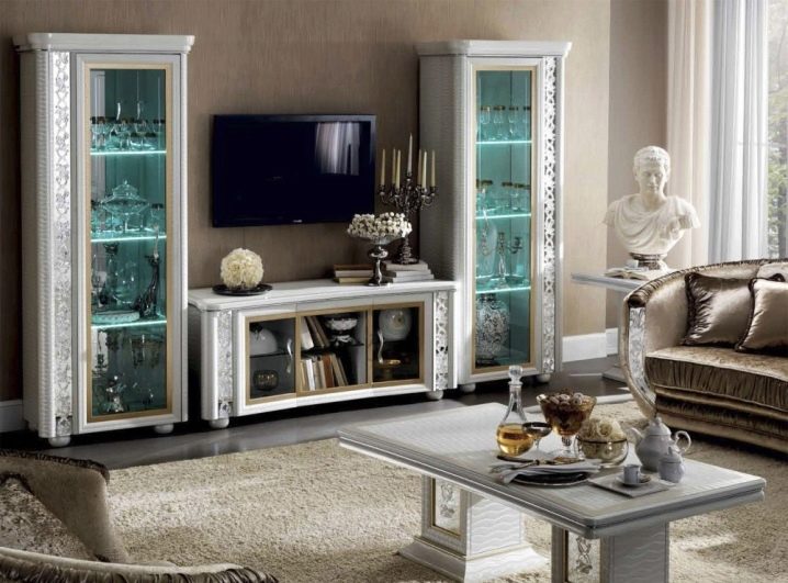 - Витрини шкафове. Интериорът на този дизайн е прозрачен, вратите или рафтовете са изработени от стъкло. Подобна мебел е интересна за поставяне на фигурки, сувенири, фотографии и всякакви други декоративни елементи..
