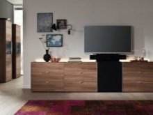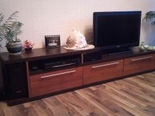 Много съвременни дизайни са по -подходящи за поставяне на телевизори, отколкото специални стени. Освен това те заемат много по -малко място. Удължената повърхност и редица разтегателни чекмеджета ви позволяват да поставите много неща в скрина, така че много хора харесват такива продукти. Ако вашият телевизор е плазмен телевизор, лесно можете да си купите скрин, оборудван с подвижна платформа за него.. Така скъпото оборудване може да се използва само при необходимост, а през останалото време то няма да заема място, натрупвайки прах. Също така няма риск от случайно повреждане на оборудването от активни деца или любопитни животни..