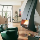 - Висящите камини са оригинално решение за малко пространство, когато е особено важно да се спестят квадратни метри. Окачената конструкция на камината позволява да се монтира или на стената, или на тавана. Леката и безопасна електрическа камина е особено подходяща за модерни високотехнологични интериори или минималистични пространства. Стенните висящи камини ви позволяват да промените обичайното разположение на чифт телевизор и камина и да ги смените: окачете електрическа версия на огнището отгоре и телевизор под него.