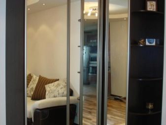 Изборът на шкаф с огледало за малка стая визуално ще увеличи размера на стаята, ще я направи по -ефирна и свободна. Ъгловите полукръгли мебели могат да бъдат изработени по поръчка по специално изработени проекти и чертежи. Това ще струва много повече от серийните проби, но ви позволява да реализирате всякакви заявки и да проектирате фантазии. Интериорът на хола ще бъде уникален, отразяващ вкусовите и материалните възможности на собственика.