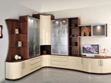 Основното предимство на ъгловите стени е компактността. Това качество е важно за малки пространства. Важна характеристика е практичността, съчетана с капацитет. Съвременните дизайнерски решения ви позволяват да направите удобен, не заемащ много пространство елемент от интериора от обемен обект.