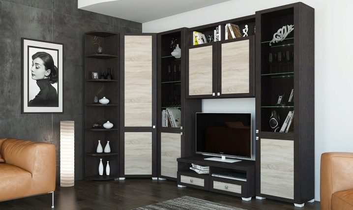 Ъгловите стени за всекидневни се предлагат в модулни версии. Това ви позволява да сглобите уникален комплект, който идеално отговаря на нуждите на купувача. За стая с всякакъв размер е лесно да изберете отделни секции и да сглобите слушалки, които отговарят на размера на стаята. Модулите могат да се разменят, пренареждат в друга част на хола. Това ви позволява да променяте околната среда, като същевременно поддържате същите мебели..