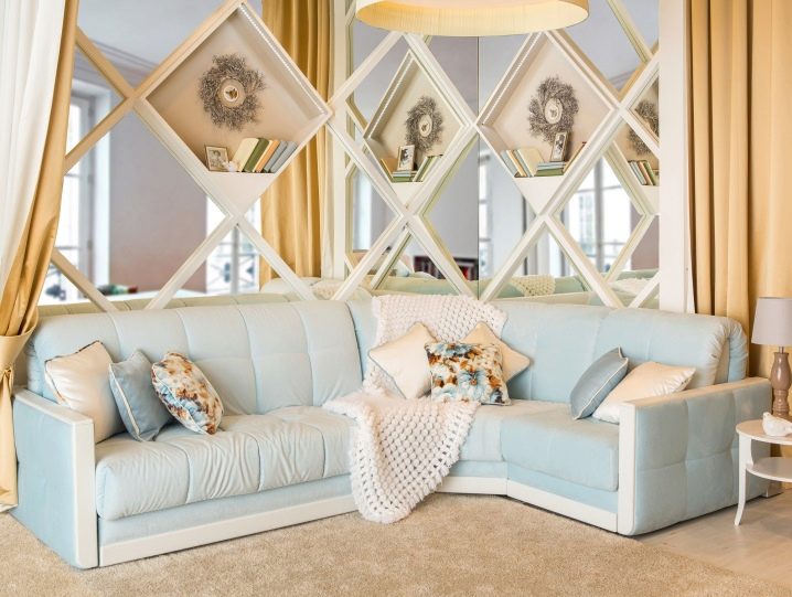 Благодарение на успешното запълване на празното пространство, ъгловите мебели успяха да променят подхода на дизайнерите към интериорния дизайн.. Формата му позволява рационално използване на пространството, създавайки комфортна и практична среда. Многобройни предимства направиха ъглови мебели в хола търсени сред собствениците на малки и просторни дневни. Заемайки по -малко място от конвенционалните мебели, тя ви позволява да запълните полезно цялото пространство на стаята.