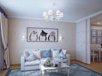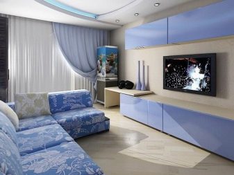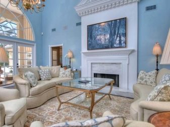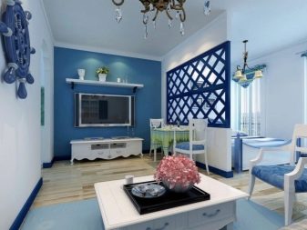 Всичко трябва да се комбинира със стил. Синият цвят ще изглежда страхотно в хай-тек стил, ретро посоки и дори класика, които са присъщи на тържествеността. Най -хубавото е, че синьото се вписва в скандинавския стил и Прованс. При желание може да се въведе в модерен стил, но е важно да се спазва умереност с добавяне на аксесоари към интериора.. Дизайнът на хола трябва да показва дълбочината на вашия вътрешен свят..