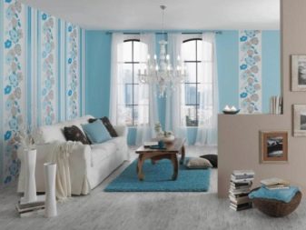 Започнете с декорация на стени: това може да бъде тапет или друг материал. Изберете светлосини нюанси, които да ви помогнат да се отпуснете. Дълбоките тъмни нюанси са идеални за просторни дневни. Не прекалявайте, в противен случай ще превърнете светла стая в мрачна и неудобна.
