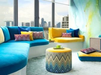 - Ярките възглавници на дивана могат да бъдат по -тъмни от основния нюанс на интериора..