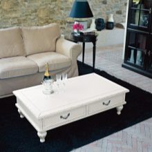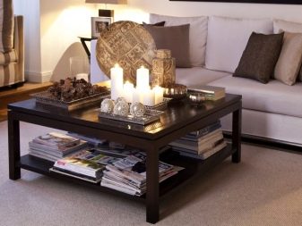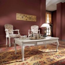 Поддръжници класически решения, които имат уважавани мека мебел с извити крака, шкафове и пързалки от дърворезба в хола, могат да си купят малка масичка за кафе. Той ще създаде усещането за светски салон от произведенията на Пушкин и Толстой. Сянката на мебелите трябва да бъде избрана така, че да е в хармония с останалата среда. Еклектиката като тенденция в интериора, разбира се, е добра, но не и в този случай.