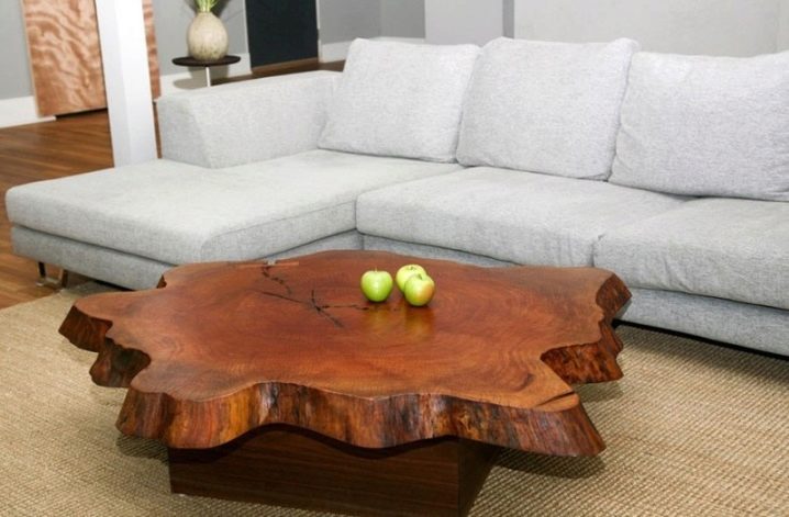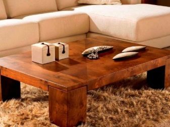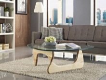 Когато избирате маса, трябва да предоставите, така че да съвпада по височина с дивани, фотьойли, столове и е удобно да поставите чаша върху него, поставете книга. Добре е плотът да е голям. Но такава маса няма да се побере във всеки хол..
