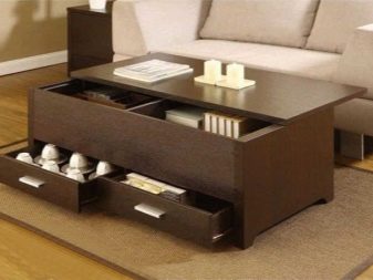 Съвременните модели често са оборудвани с чекмеджета и рафтове под плота. Те могат да скрият списания, книги, дистанционно управление на телевизора от любопитни очи..