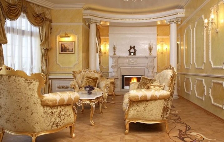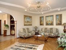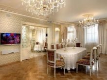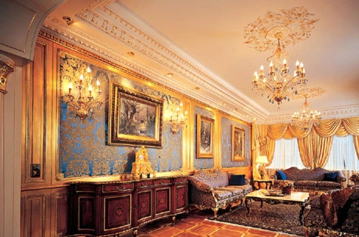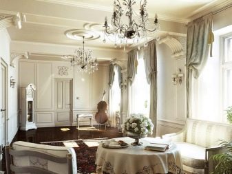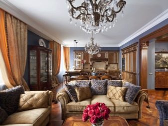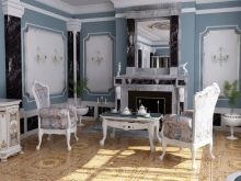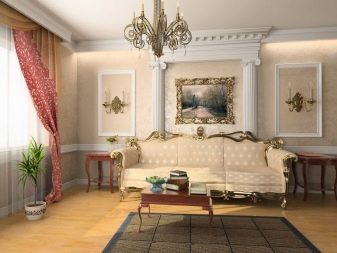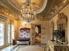 В класически интериор можете да окачите истински произведения на изкуството на велики художници или техните висококачествени имитации на видно място. Таванът или колоните могат да бъдат украсени с мазилка и венецианска мазилка. Обхватът на мисълта е почти неограничен.
