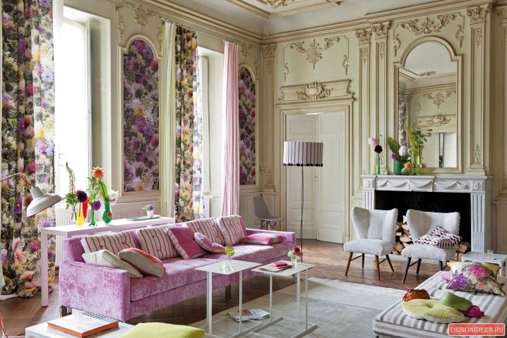 Всички видове свещници, метални конструкции с къдрици и сложни шарки, ковчежета, инкрустирани с камъни, вази с флорален порцеланов дизайн, дори цели комплекти ще украсят рафтовете и масите във вашия хол. Диванът удобно ще побере миниатюрни възглавници, изработени от кадифе, коприна, дори декорирани с бродерия с монограми.