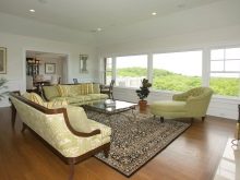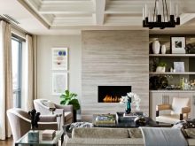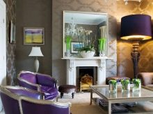 Зоната за сядане може да бъде подчертана с елегантни подови лампи или аплици с приглушено осветление. В общи линии, в големите всекидневни зонирането може да се извършва главно с помощта на осветителни тела. Стилът изисква сдвоени лампи, подобен дизайн.
