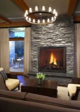 Камините често се инсталират в съвременните дневни. Това могат да бъдат естествени модели, био камини или техните изкуствени декоративни колеги. Камината също е облицована с естествен камък или тухлена зидария, както и довършителни материали, които имитират такива повърхности..