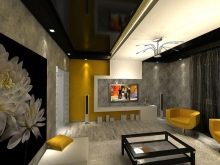 Друг популярен стил през този сезон е хай-тек. Това е комбинация от удобство, функционалност и практичност. В рамките на този стил можете да комбинирате минималистичния дизайн на залата с необичайни мебели, допълвайки интериора със съвременни технологии (като плазмени телевизори, аудио устройства, компютри). Можете да играете контрастно, както и да използвате различни геометрични фигури.