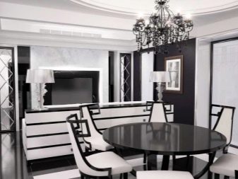 Този стил се характеризира с комбинация от различни геометрични форми. Това могат да бъдат кръгли маси и правоъгълни елементи под формата на первази на прозореца, картини, седалки за диван. За тапицерия се избират екзотична животинска кожа и други необичайни материали..