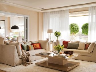 Много модерни стаи са направени да изглеждат като шезлонги, като същевременно се предпочитат спокойните бежови нюанси. Те създават усещане за спокойствие, спокойствие и ви позволяват да се отпуснете след тежък работен ден. Освен това дизайнерите сега предлагат голямо разнообразие от бежови нюанси, комбинирайки които, можете да създадете интересен градиент (и дори контрастни преходи).