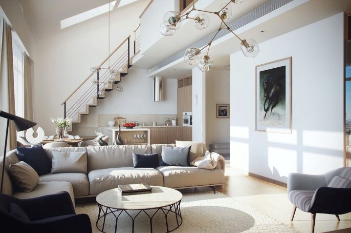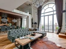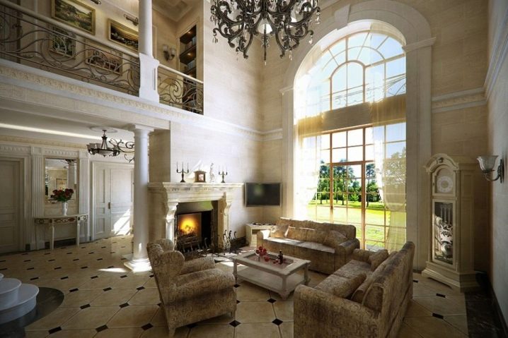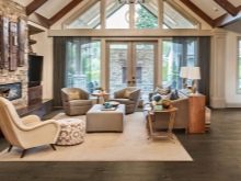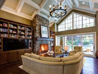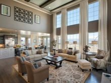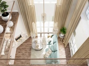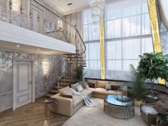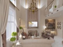 Що се отнася до декорацията на стаята, можете да изберете всяка. Всекидневните с втора светлина ви позволяват да използвате тъмни цветове и затова черен таван може да бъде интересен ход на дизайна. Основното нещо е да не украсявате цялата стая с изключително тъмно. Таванните греди също ще изглеждат ефектно в такава стая, особено ако това е стил на таванско помещение. Интериорът на хола с втора светлина ще бъде много добре допълнен от колоните.