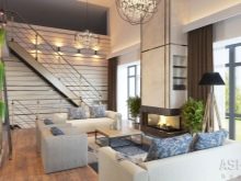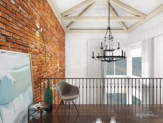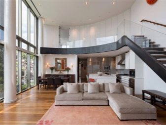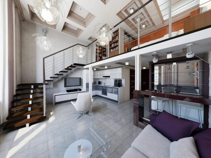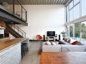 В повечето случаи холът, кухнята-хол, трапезарията се намират отдолу. Отгоре може да бъде зает от спалня, офис за работа, зона за игра.