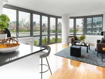 - поради факта, че има толкова много прозорци, ще бъде по -трудно да се затопли през зимата: ще трябва да използвате система за подово отопление, както и отоплителни уреди;