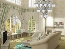 Що се отнася до завесите, те също трябва да съответстват на цялостния интериор.. Можете да изберете както щори, така и лека органза или масивни завеси. Най -красиви са моделите, които са разположени по цялата дължина на прозореца. В допълнение към завесите, можете да допълвате дизайна с добър текстил. Покривки, меки възглавници, одеяла – всичко това ще направи стаята уютна у дома. Добро решение би било също да се използват картини, за предпочитане двуетажни, както и големи живи растения във вани и саксии..