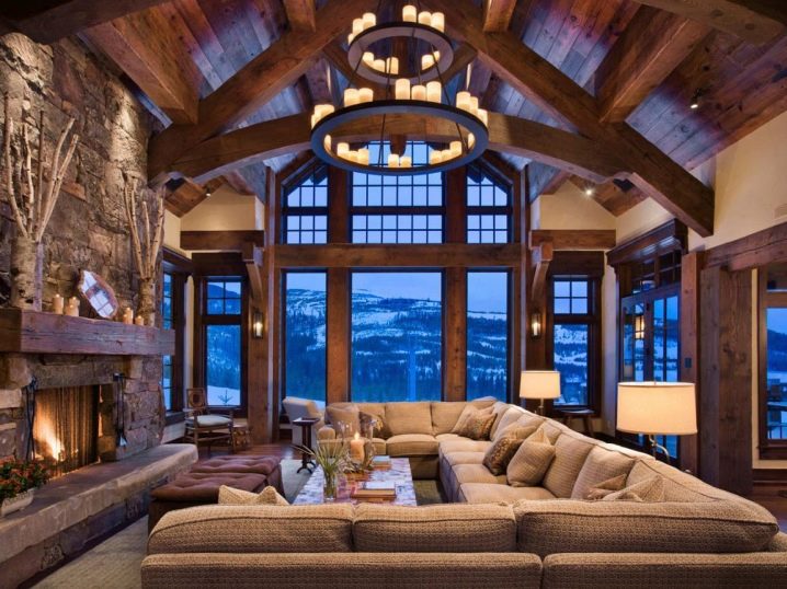 - Луксозна стая за селска къща. В декорацията са използвани много естествени материали.