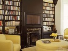 В същия класически стил той ще ви бъде полезен. Панелите, които се движат според принципа на вратите на отделенията, ако е необходимо, могат лесно да скрият телевизора. Друг метод е използването на рамки. Оформен по този начин, телевизорът се превръща в своеобразна картина, чието съдържание се променя ежедневно. Ако окачите снимки или снимки около телевизора в хармонично комбинирани рамки, получавате интересна композиция, чийто център ще бъде телевизор.
