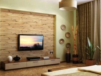 Текстилни, бамбукови и дървени елементи ще бъдат подходящи в японски, селски, еко стил. Те ще създадат контраст между съвременните телевизионни технологии и тяхната естествена естественост. Това е особено вярно за дърво и бамбук. Мебели от необработено дърво, както и естествени цветове (маслини, пясък), живи растения в саксии, подходящ декор могат да подкрепят темата за природата в интериора..